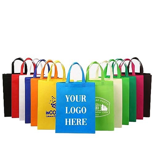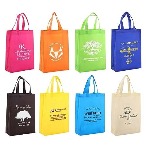 100PCS Custom Bulk Tote Bags Personalized Grocery Shopping Bag Reusable Non-Woven Hand Bags with Your Business Logo/Text (option 1:100pcs)