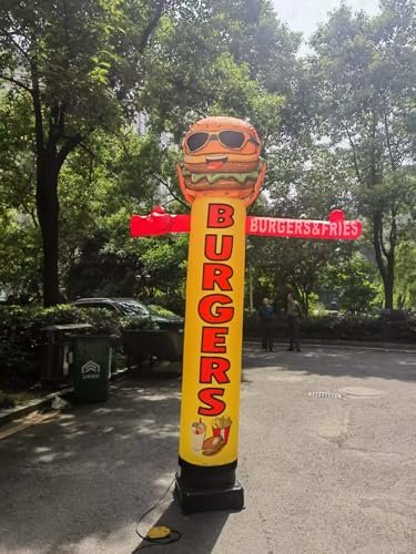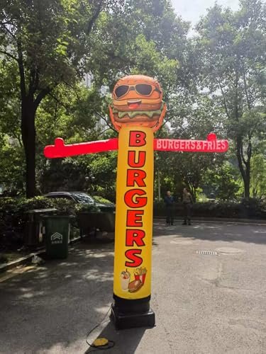 10ft Burgers & Fries Waving Man – Inflatable Waving Puppet for Outdoor Advertising Grand Opening Burger Shop Diner & Fast Food Promotions – Eye-Catching Mascot Graphics – Easy Setup (Without Blower)