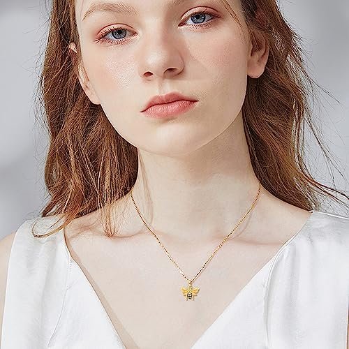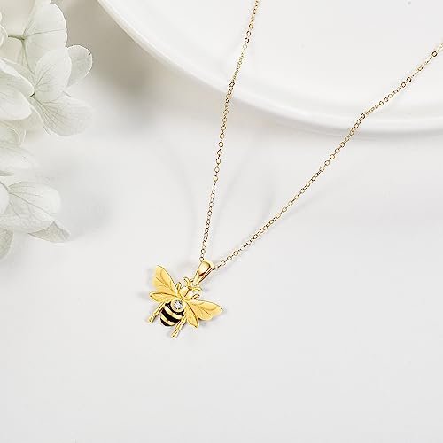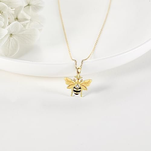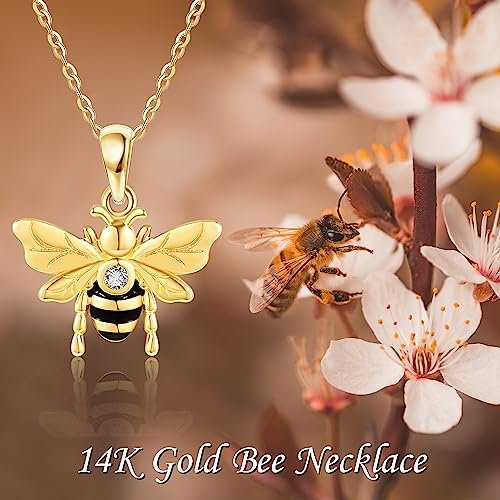 14K Gold Bee Necklace 14K Yellow Gold Bee Jewelry Bee Gifts for Women