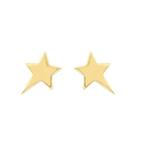 14K Solid Gold Star Stud Earrings – Dainty Yellow Real Gold Celestial Earrings – Minimalist Gold Studs For Women