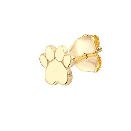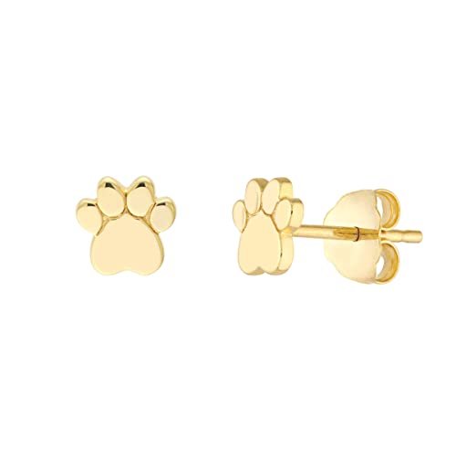 14K Solid Gold Stud Earrings – Dainty Yellow Real Gold Paw Print Earrings – Minimalist Small Gold Studs For Women