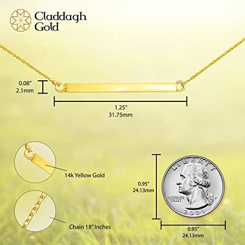 14K Yellow Gold 1-1/4″ Horizontal Bar Style Pendant Rolo Chain Necklace – 18″