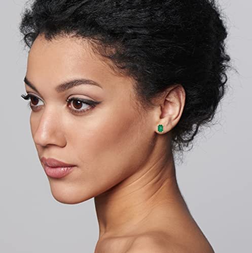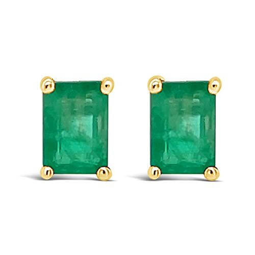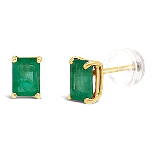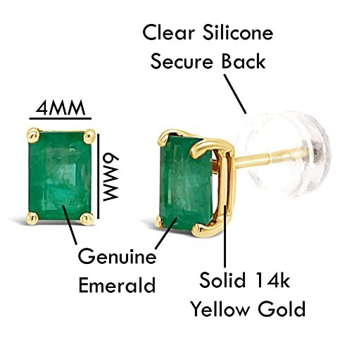 14k Yellow Gold Natural Green Emerald Stud Earrings(6x4MM Emerald Cut)