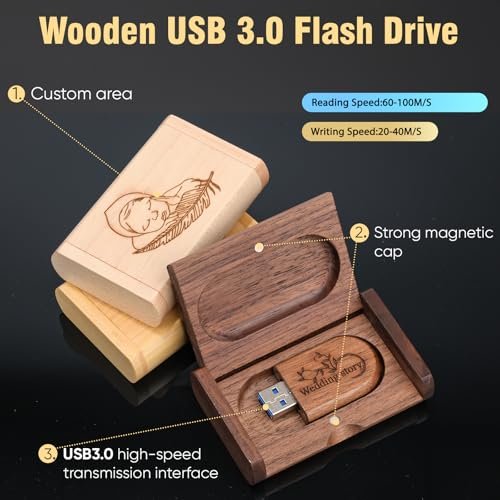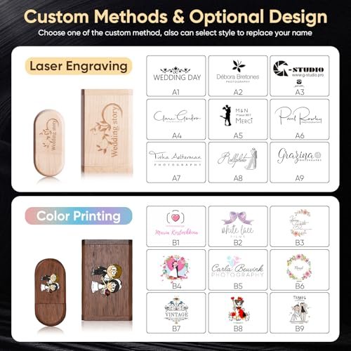 25Pack Personalized Wooden/Bamboo USB 3.0 Flash Drive 4GB – Handmade Custom Engraved Memory Stick for Wedding, Corporate Gifts, Promotions, Events (Containing Exquisite Bags)