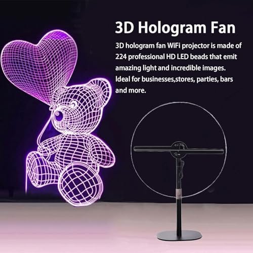 3D Hologram Fan, 3D Hologram Projector, 3D HD LED Hologram Fan WiFi Projector, Animated Holographic Projector Display For Stores, Shops