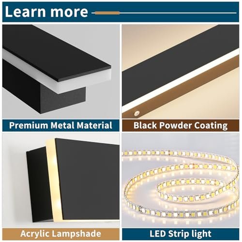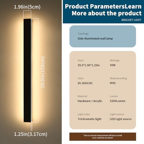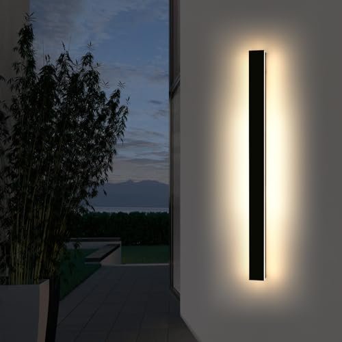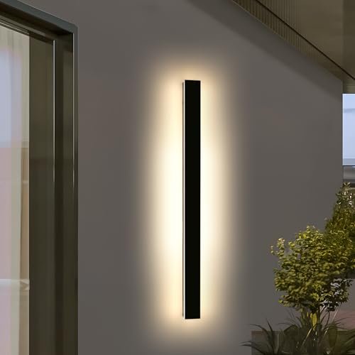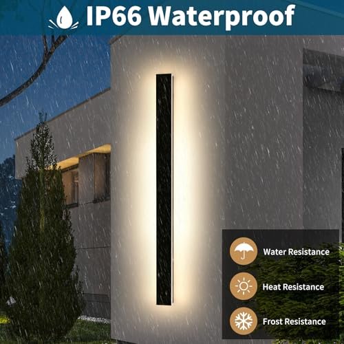 59inch Modern Outdoor Wall Lights, Outside Linear Wall Light, 3 Color Lights 3000K/4500K/6000K, IP65 Waterproof, Frosted Acrylic, Black Exterior Wall Sconce for Porch Doorway Patio Garage Garden