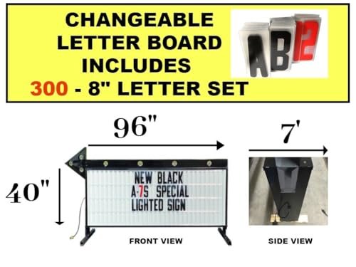 A-7 Special Portable Flashing Arrow Roadside Sign | Changeable Letter Board included | 40″ H x 8′ W | LED Light | Yellow Face