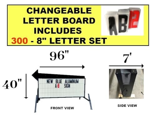 A-8 Portable Flashing Arrow Roadside Sign | Changeable Letter Board included | 40″ H x 8′ L | Fluorescent Light | White Face