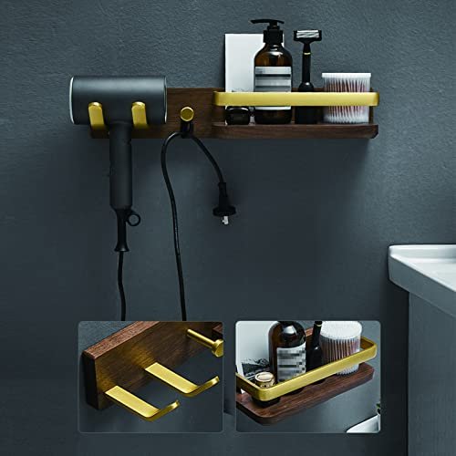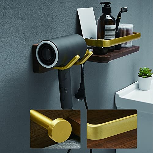 A1DFDFGOQSFG Solid Wood Hair Dryer Holder Hair Styling Product Care Tool Organizer Bath Supplies Accessories Tray Stand Storage Bathroom Brass Hair Dryer Holder (Size : 15.7in/40cm) ()
