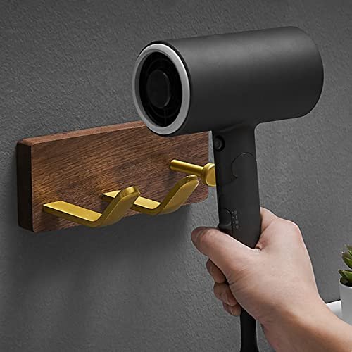 A1DFDFGOQSFG Solid Wood Walnut Hair Dryer Holder Hair Styling Product Care Tool Organizer Bath Supplies Accessories Tray Stand Storage Bathroom Brass Hair Dryer Holder