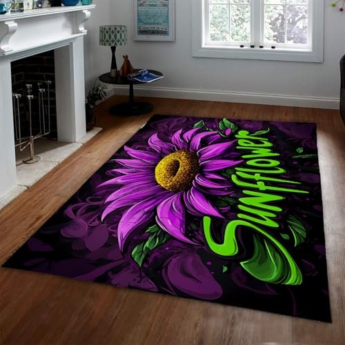 Abstract Purple Floral Area Rug 3’3″x4’6″ for Balcony Anti-Skid Anti-Pet Scratching Easy Care Modern Carpets for Living Room Office Hallway