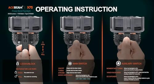 ACEBEAM X75 75,000 Lumen USB-C Fast Charging Brightest Handheld Flashlight XHP70.2 LED 5000K Portable Compact IP68 Waterproof 3,772 Feet of Beam Distance High Powered Searchlight w/Flame Patch