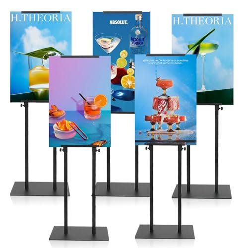 AceShow Poster Stands for Display, Adjustable Height Sign Holder with Heavy Duty Pedestal, Stand Up Banner Sign for Floor, Height Up to 80 inch, Double-Sided Signage with Non-Slip Mat (5 Pack)