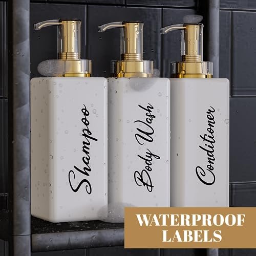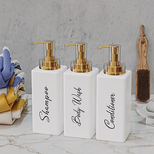 Akalin Refillable Shampoo and Conditioner Bottles, 16oz White and Gold Soap Dispenser Bathroom, Shampoo and Conditioner Dispenser for Bathroom Lotion Body Wash Massage Oils (White)