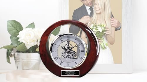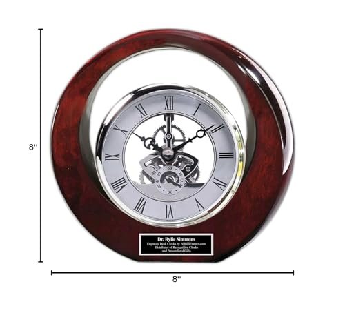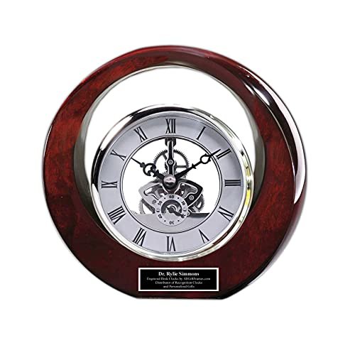 AllGiftFrames Personalized Lunar Circular Rosewood Desk Clock Design Black Engrave Plate Silver Text Gear Display Appreciation Employee of The Year Business Gift Anniversary