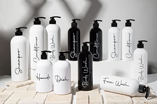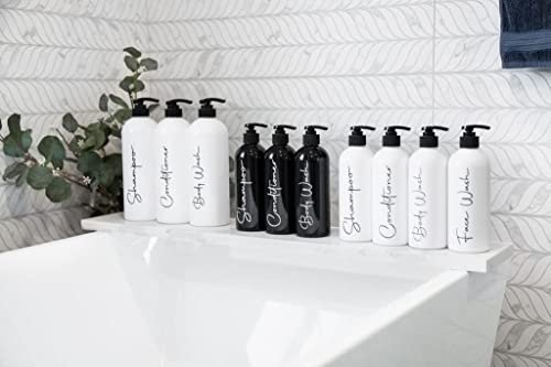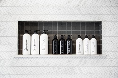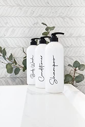 Alora 32oz Reusable Shampoo and Conditioner Bottles – Set of 3 – Easy to Read Labels – Pump Bottle Dispenser for Shampoo, Conditioner, Body Wash – Empty Plastic Refillable Containers for Shower