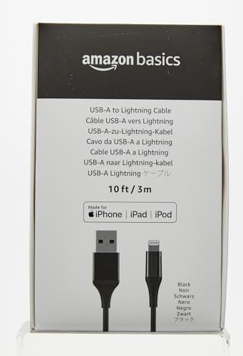Amazon Basics MFi Certified USB-A to Lightning Charger Cable for Apple iPhone iPad, 10 Feet, Black