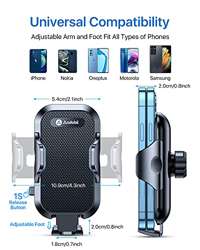 【Wide Compatible with All Smartphones】 This andobil car cell phone holder is compatible with all cell phones from 4″ to 7″, the specially designed adjustable foot can be adjusted for different sizes and shapes, perfect for iPhone 16 15 14 13 12 Pro Max, 15 Plus, X, XR, SE, 7, 6, Samsung Galaxy S24 ultra, S24, S23 ultra, S23, S22, S21, S20, S10, Note 10, Moto G, Google Pixel, Nokia, Xiaomi, OnePlus, Sony, LG, etc.