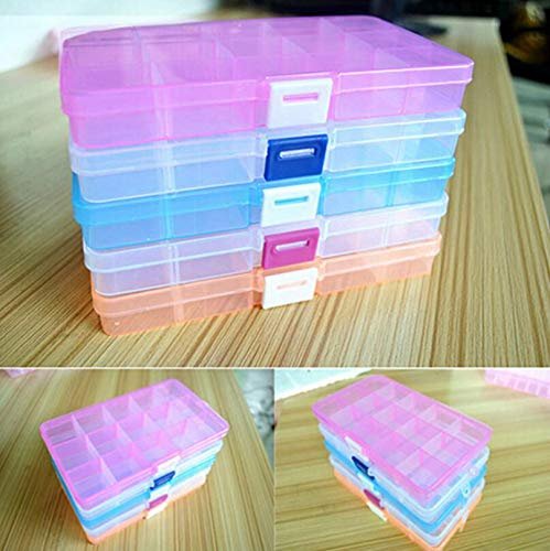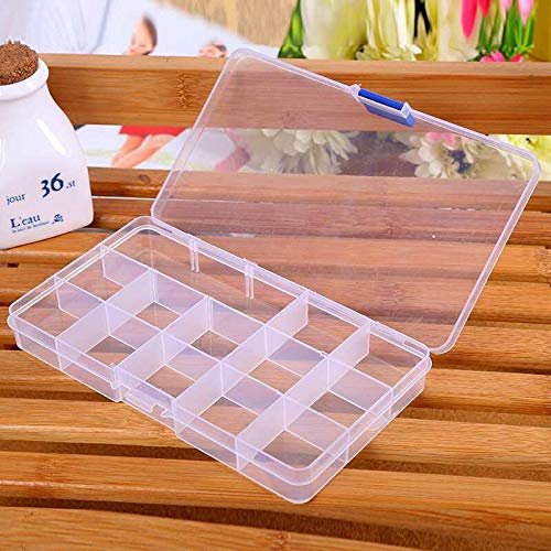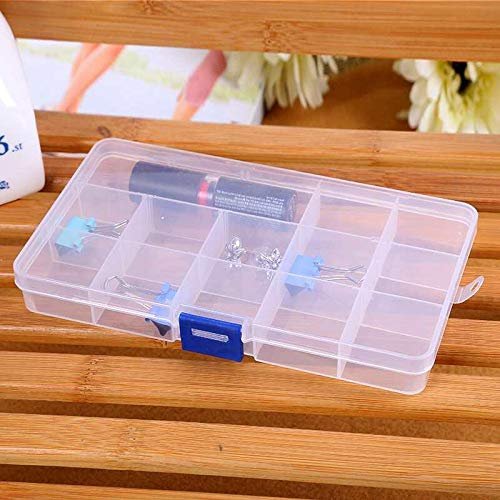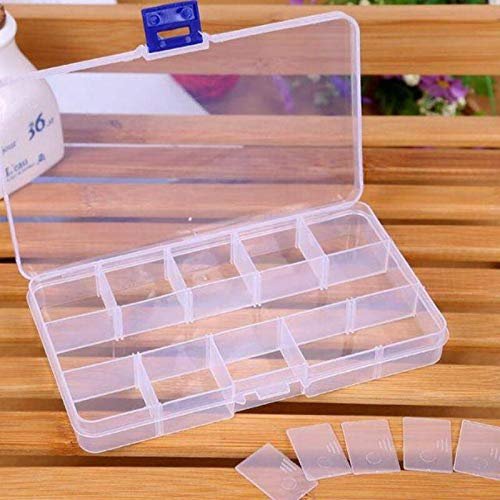 Anncus 15 Compartment Plastic Clear Storage Box Small Box for Jewelry Earrings Toys Container LX6808 – (Size: 17.3×9.8×2.3cm)