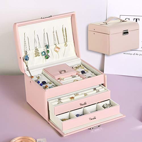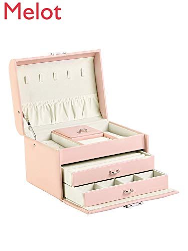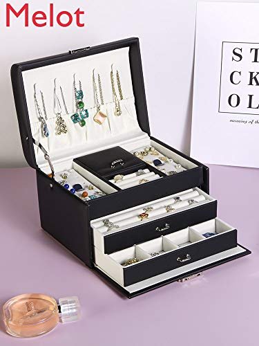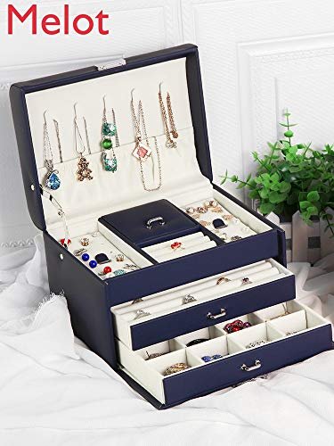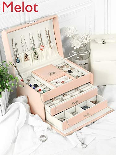 Anncus Jewelry Box Storage Large-Capacity Jewelry Stud Earrings Simple Exquisite Necklace Ring Household High-End Jewelry Box – (Color: Rose Red)