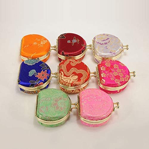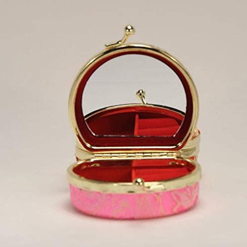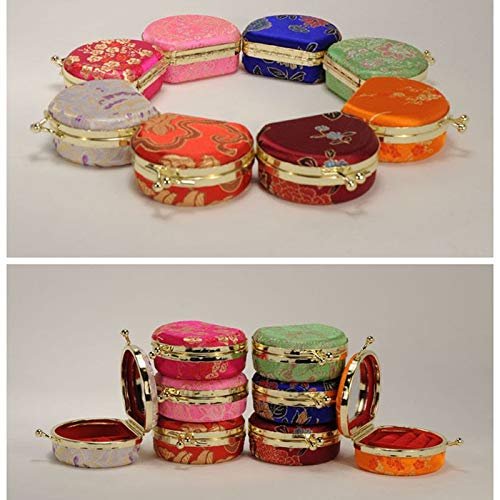Anncus Portable Small Travel Jewelry Set Packaging Boxes Mirror Antique Handmade Silk Ring Necklace ear rings Storage Case F20173452 – (Color: mixed)