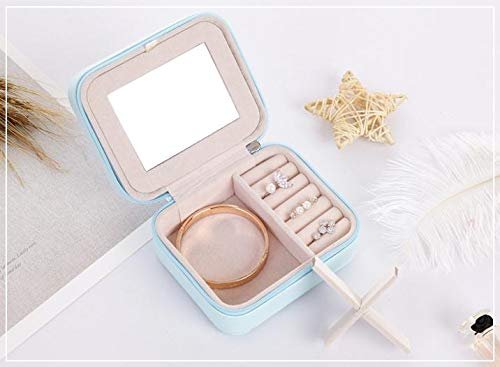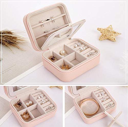 Anncus Square Jewelry Storage Box Creative Easy To Carry Organizer Rings Earring Necklace And Bracel Leather Boxes With Mirror – (Color: Pink)