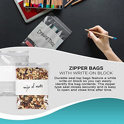 APQ Pack of 1000 White Block Zipper Bags 8 x 10. Ultra Thick Write on Block Poly Bags 8×10. Thickness 4 mil. Pills Bags. Great for Packing and Storing. Ideal for Industrial, Food Service.