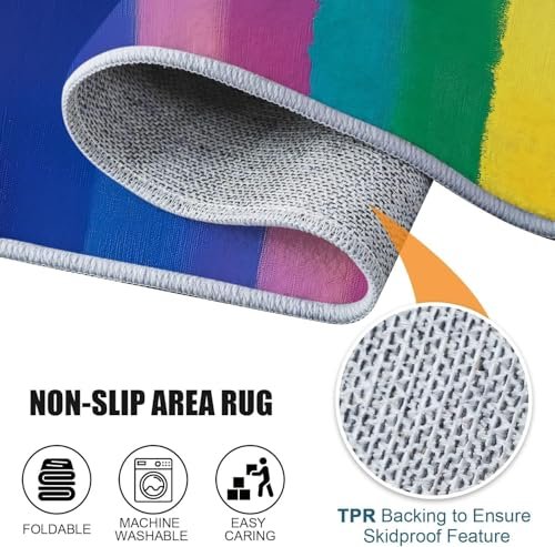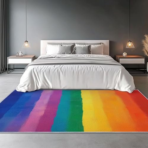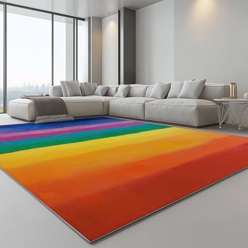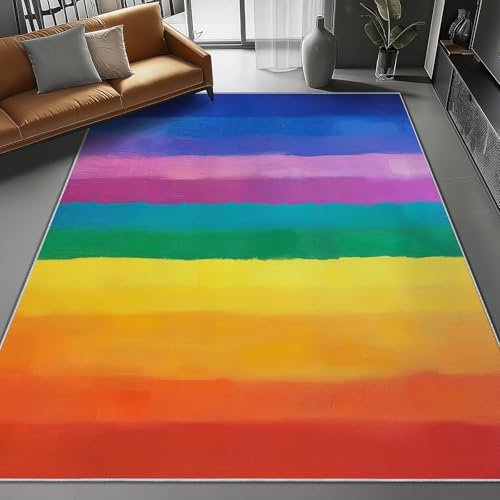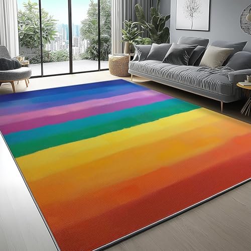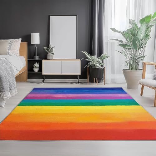 Area Rugs 5 x 8 ft for Living Room, Fashion Rainbow Stripes Print Rectangular Non-Slip Rug, Colorful Stain Resistant Washable Low Pile Carpet,for Bedroom Entryway Flannel Home Carpets
