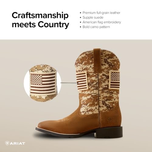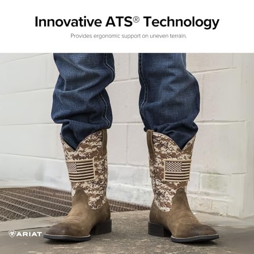 ARIAT Mens Sport Patriot Western Boot Distressed Brown/Sage Camo Print 12