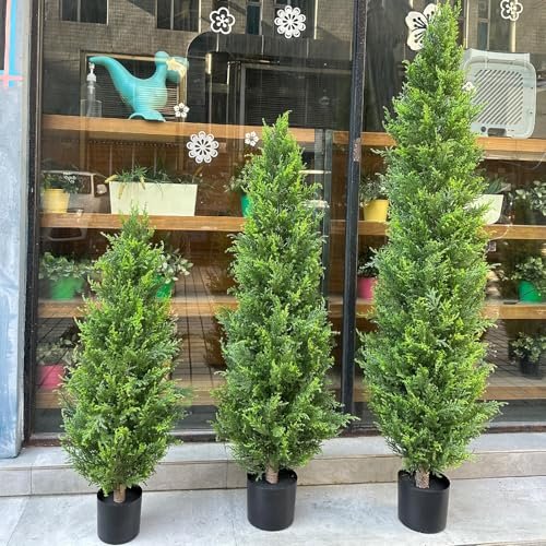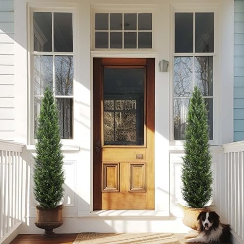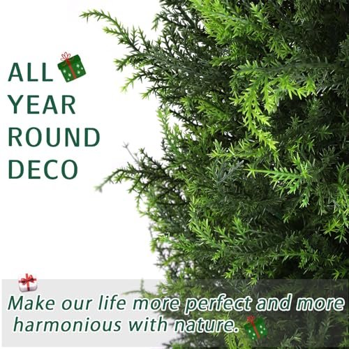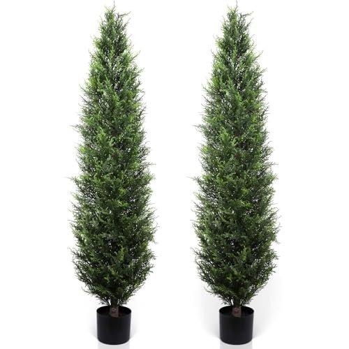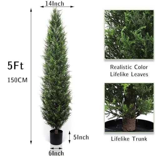 Artificial Cedar Topiary 5ft Fake Cypress Trees Faux Cedar Potted Plants Silk Pine Cypress for Outdoors Front Home Decor 2 Pack