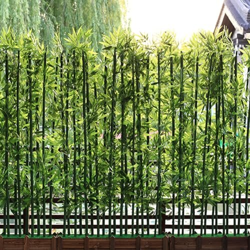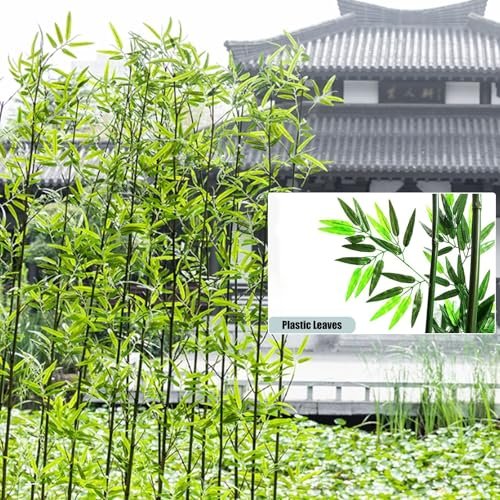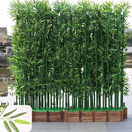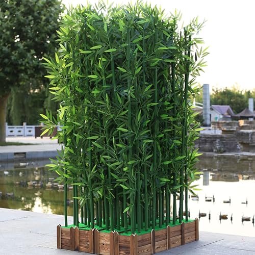 Artificial Fake Bamboo Tree Faux Potted Plants with Wood Base,Entrance Wall Room Partition Screen,Fake Green Plants Faux Tree with Wood Pot,Outdoor Indoor Decoration,Room Separator Privacy Barrier for