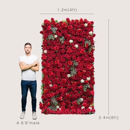 Artificial Flower Wall Panels, Luxury 5D Silk Floral Backdrop Decor for Wedding Celebrations, Festive Party and Home Decorating, Quick Assembly and Storage, Both Eco & Pet Friendly, 4 ft*8ft.