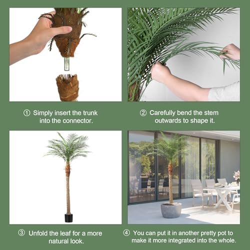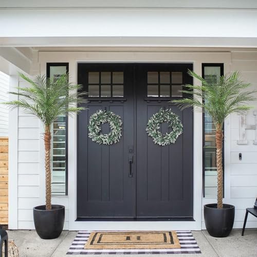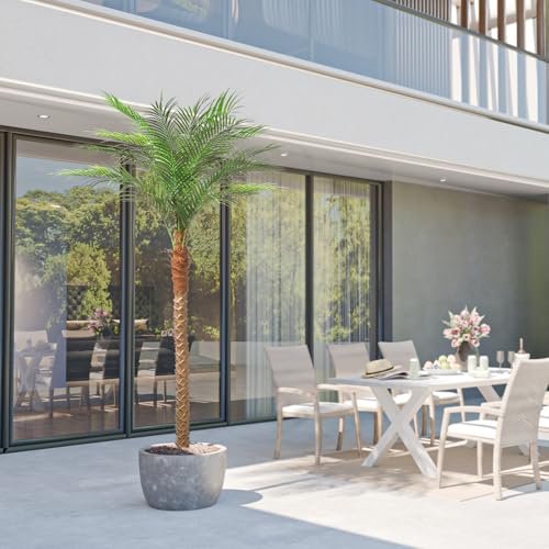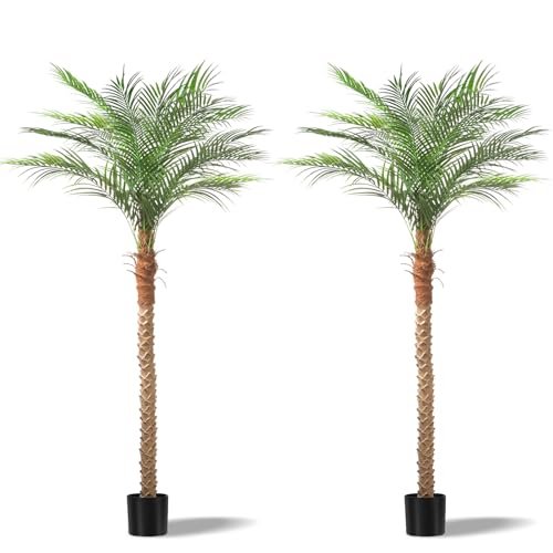 Artificial Phoenix Palm Tree 7ft Tall 2 Set – Fake Large Tropical Tree with 15 Adjustable Leaves, Outdoor Indoor Faux Sago Palm Plant for Living Room Patio Poolside Yard Decor (2, 7ft)