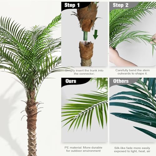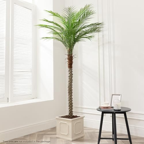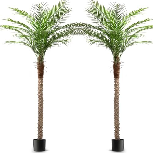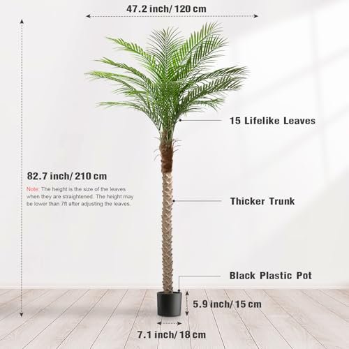 Artificial Phoenix Palm Tree 7ft Tall Outdoor Indoor Decor Fake Plants with 15 Adjustable Leaves, Large Faux Sago Palm Tree for Home Office Living Room Yard Outside Patio Poolside (2, 7ft)