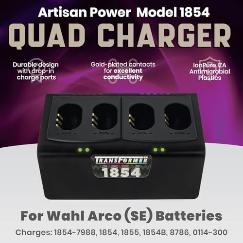 Artisan Power Quad Battery Charger for Wahl Arco and Arco SE Pet Hair Clippers | Durable Connectors, LEDs Status and a Powerful PD Type C Power Supply | Charges Four 1854 Batteries at Once