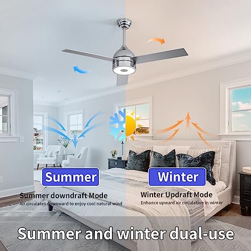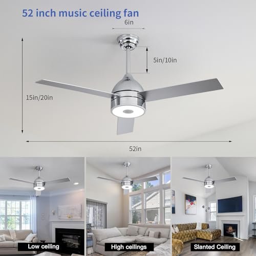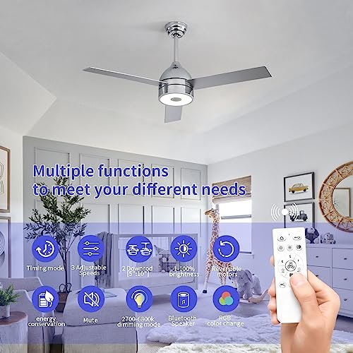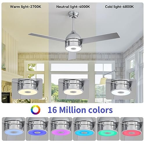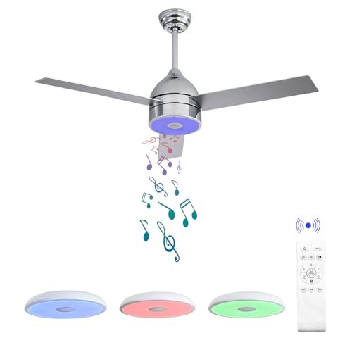 ASALL 52 Inch Plated Finish Ceiling Fan with RGB Dimming LED Light,with Music Bluetooth Speaker,Remote Control,3-Speed Regulation,Reversible Motor,Timing,for Living Room,Bedroom,Restaurant,Outdoor