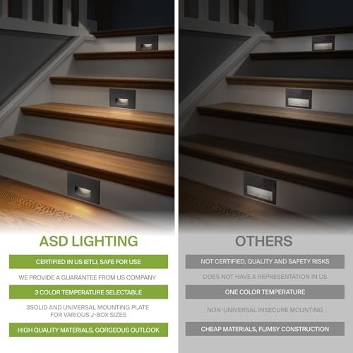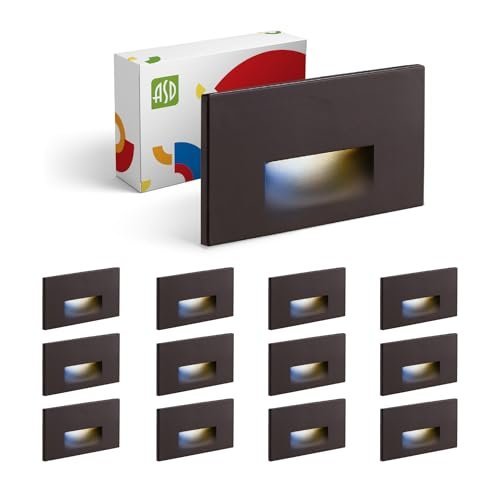 ASD LED Recessed Step Light Fixture | 3W 120LM 3000K-5000K 120V | 3CCT, Dimmable, Waterproof, ETL Listed | Outdoor-Indoor Stair Lamp, Tread Lighting, Staircase Spotlight | Dark Bronze, 12 Pack