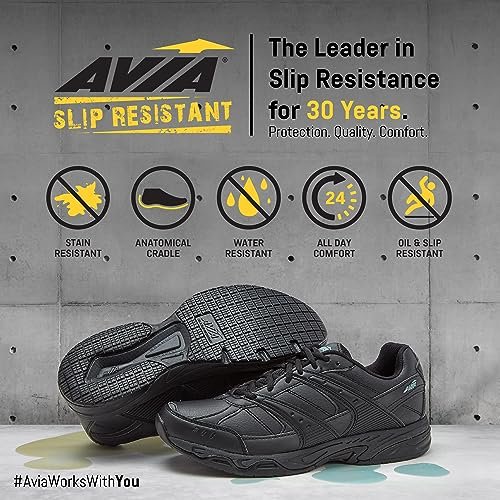Avia Avi-Union II Non Slip Shoes for Women – Lace Up Comfort Women’s Work or Walking Sneakers – Black/Castle Rock, 10 Medium
