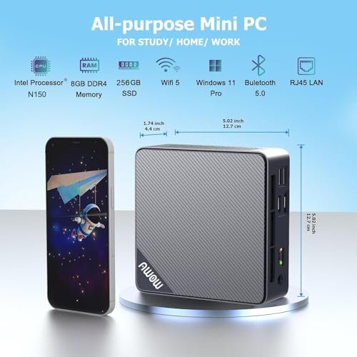 AWOW Mini PC Intel N150, 8GB RAM 256GB PCIe3.0 SSD, Mini Desktop Computer Support 4K Display/USB3.2/WiFi 5/BT5.2/ Gigabit Ethernet for Home/Office