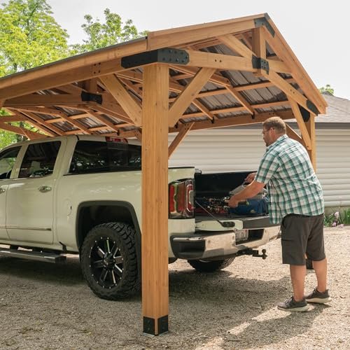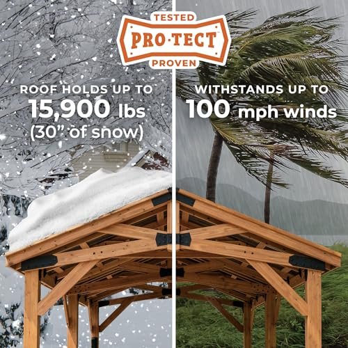 Backyard Discovery Norwood 24′ x 12′ Cedar Wood Outdoor Gazebo Pavilion with Hardtop Galvanized Steel Peak Roof, Snow Support, Wind Resistance, PowerPort, Shade for Garden, Patio, Deck, Entertaining