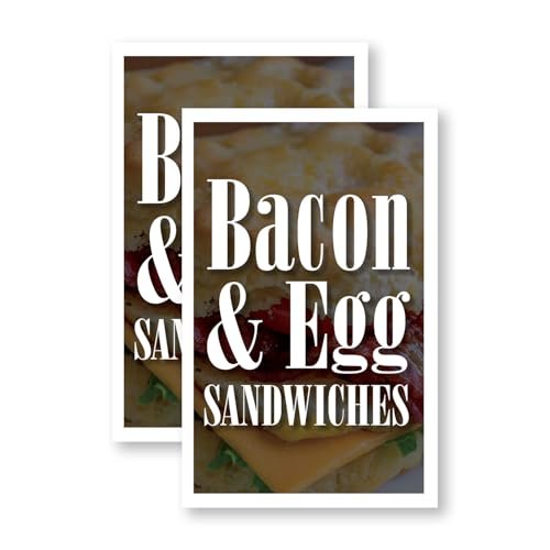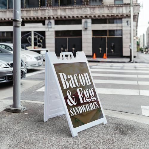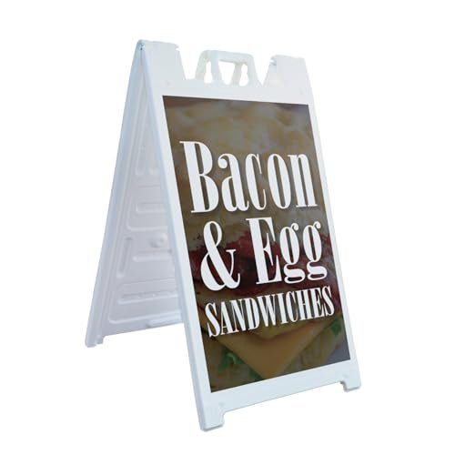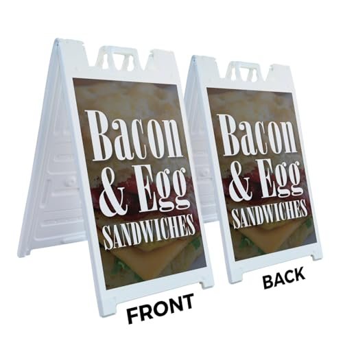 Bacon & Egg Sandwiches 24″ x 36″ Double Sided A-Frame Sidewalk Sign Includes 2 Installed Decals Foldable Portable White Signicade Sandwich Board Breakfast Specials Cafes Fast Food Promotions