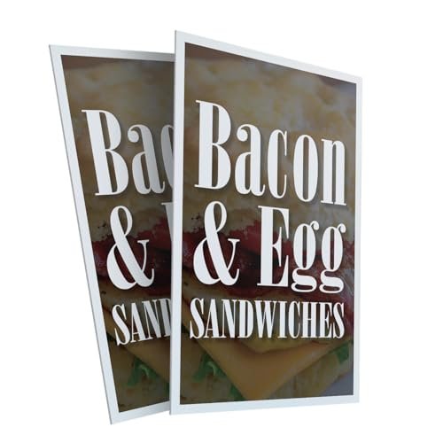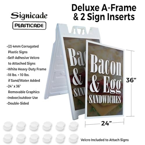 Bacon & Egg Sandwiches 24″ x 36″ Double Sided A-Frame Sidewalk Sign Includes 2 Plastic Inserts Foldable Portable White Signicade Sandwich Board Breakfast Specials Cafes Fast Food Promotions