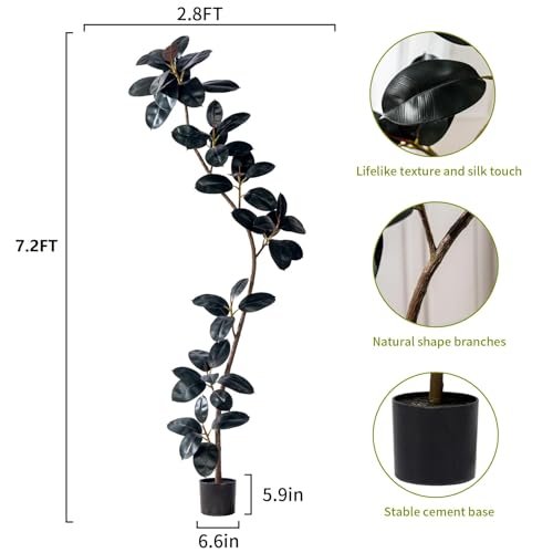 Bailikang 7.2ft Artificial Rubber Tree Faux Plants Indoor Faux Floor Artificial Trees Indoor,Fake Plant Fake Tropical Plants,Large Floor,Real Touch Rubber Tree for Home Decor