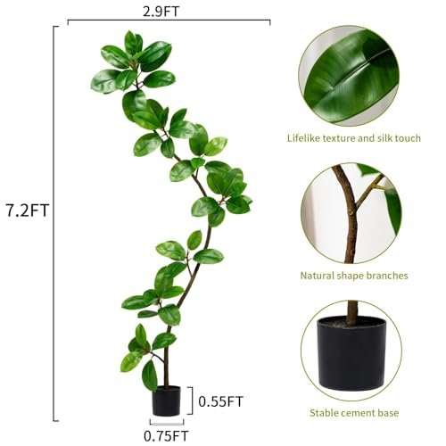 Bailikang 7.2ft Artificial Rubber Tree Faux Plants Indoor Faux Floor Artificial Trees Indoor,Fake Plant Fake Tropical Plants,Large Floor,Real Touch Rubber Tree for Home Decor