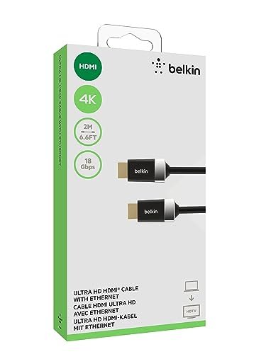 Belkin 6.6ft/2M HDTV High-Speed HDMI Cable w/Ethernet, 4K/Ultra HD, HDR, & 3D Compatibility, 18Gbps Data Transfer for Streaming, Gaming, Home Theater, Supports HDMI 2.0 for TVs, Monitors, Projectors