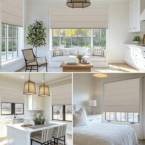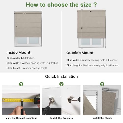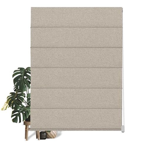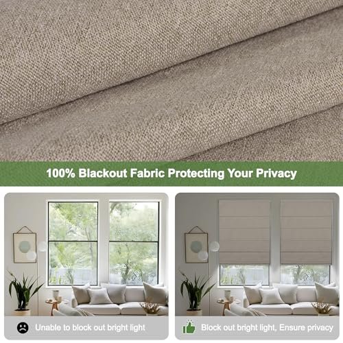 BERISSA Blackout Roman Shades for Windows,Linen Roman Blinds,Room Darkening Thermal Insulated Pull Down Window Shades for Home Living Room Bedroom,Sand Brown,43″ W x 66″ H