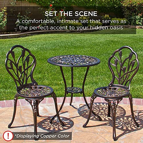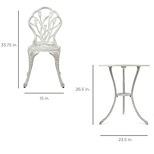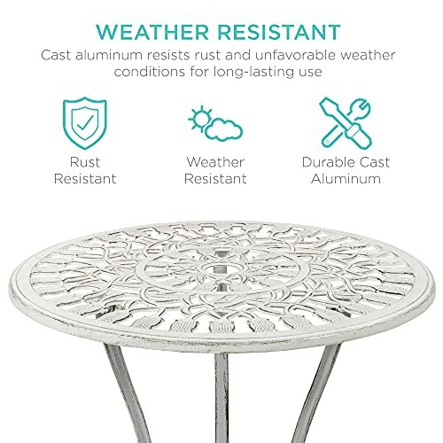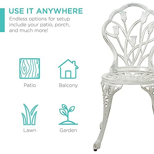 Best Choice Products 3-Piece Outdoor Rust-Resistant Cast Aluminum Patio Bistro Set w/Tulip Design, Antique Finish – White