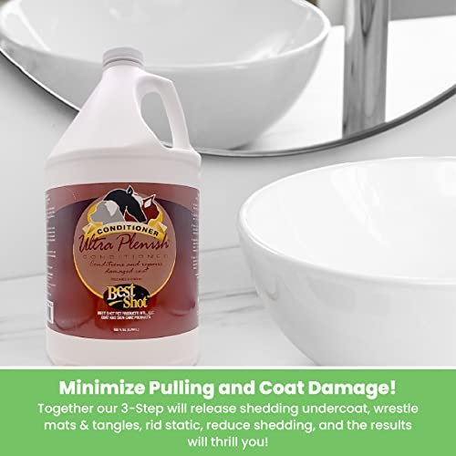 Best Shot Ultra Plenish Conditioner, Coat Release Technology, Ideal Pet Grooming Supplies, Moisturizing Conditioner for Dogs, Cats, and Horses, 1 Gallon