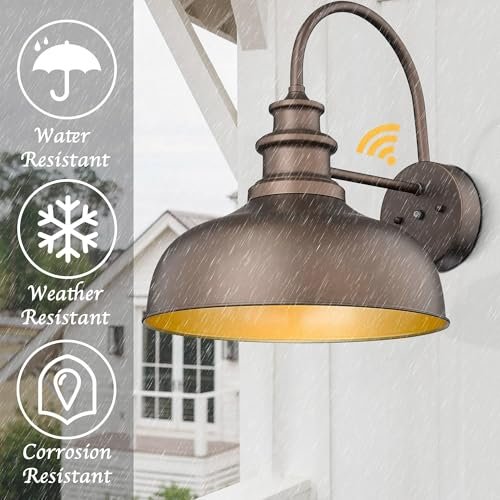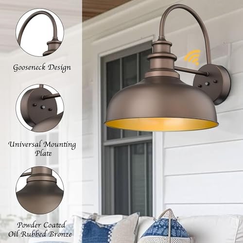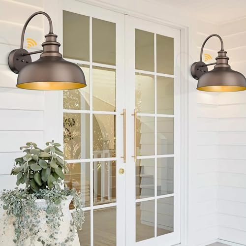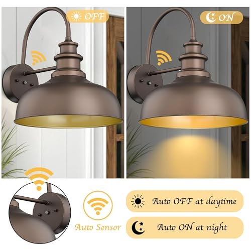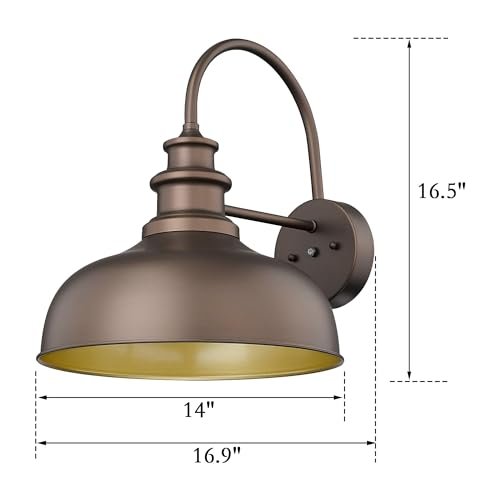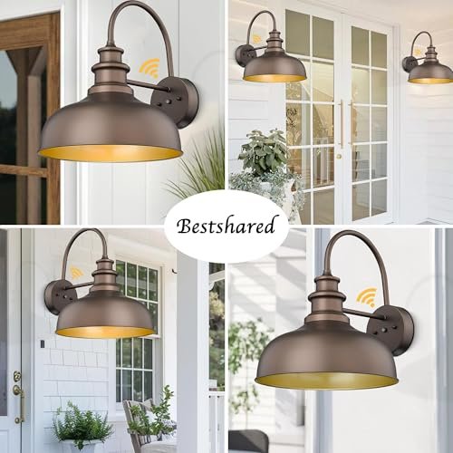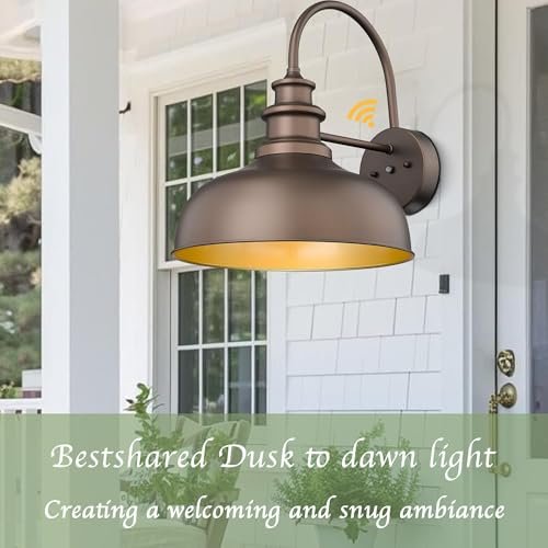 Bestshared 14”Dusk to Dawn Gooseneck Barn Lights Farmhouse Outdoor Wall Sconce Industrial Outdoor Wall Lights Exterior Wall Lighting Fixture Porch Wall Lantern(ORB+Gold, 14″-2Pack)