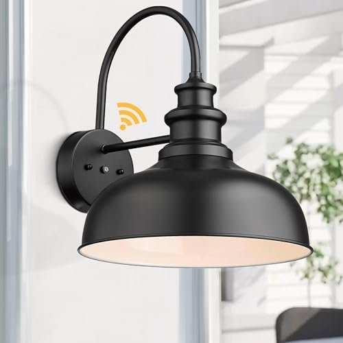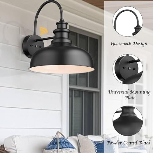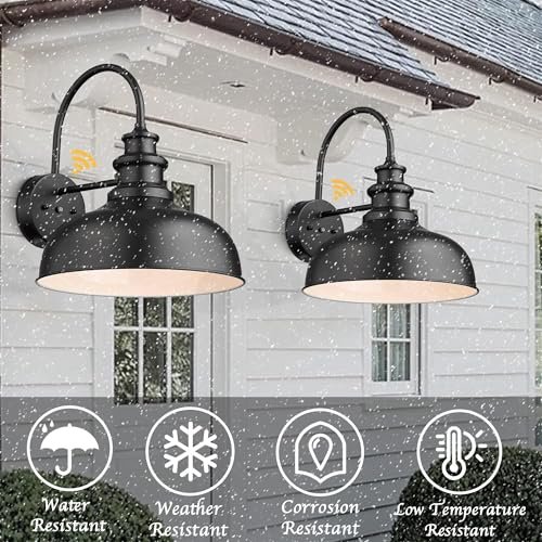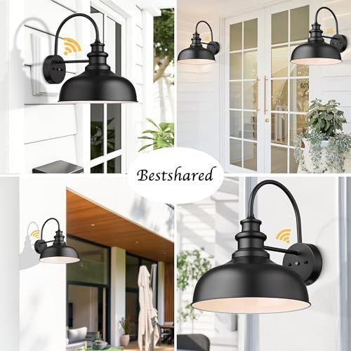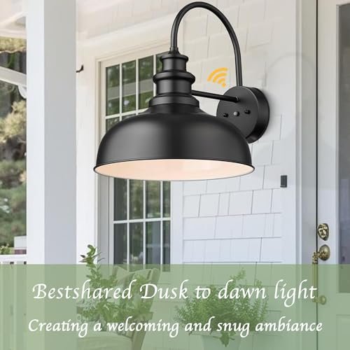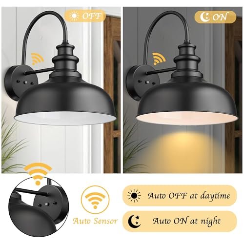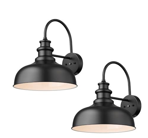 Bestshared Dusk to Dawn Gooseneck Barn Lights 14” Dome Farmhouse Outdoor Wall Sconce Outdoor Wall Lamps Outdoor Wall Lantern Farmhouse Wall Mount Light Fixture (2Pack, Black+White(Dusk to Dawn))